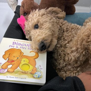 One of our dedicated team members will lovingly cuddle your pup and tuck them into bed, finishing with a comforting bedtime story. Your furry friend will absolutely adore it!